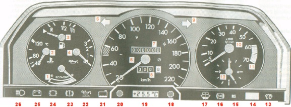 13Drehzahlmesser. Siehe Seite 54