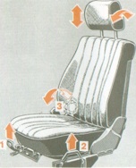 Wird eine gespeicherte Stellung gewünscht, die entsprechende Positionstaste („1" oder „2") so lange drücken, bis die Sitz- und Kopfstützeneinstellung beendet ist. Wird die Positionstaste losgelassen, ist aus Sicherheitsgründen der Einstellvorgang sofort unterbrochen. Kopfstütze abnehmen siehe „Praktische Ratschläge".