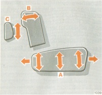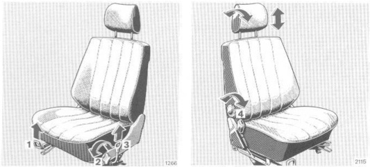 Kopfstütze so einstellen, daß der Hinterkopf etwa in Ohrenhöhe abgestützt wird. Die Kopfstütze ist auch von Hand nach vorn schwenkbar.