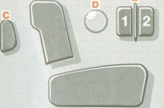 Es können zwei Stellungen gespeichert werden. Nach dem Einstellen des Sitzes und der Kopfstütze die Speichertaste D und innerhalb von 3 Sekunden die Positionstaste ,,1" drücken. Auf Positionstaste ,,2" kann eine weitere Sitz- und Kopfstützenstellung gespeichert werden.